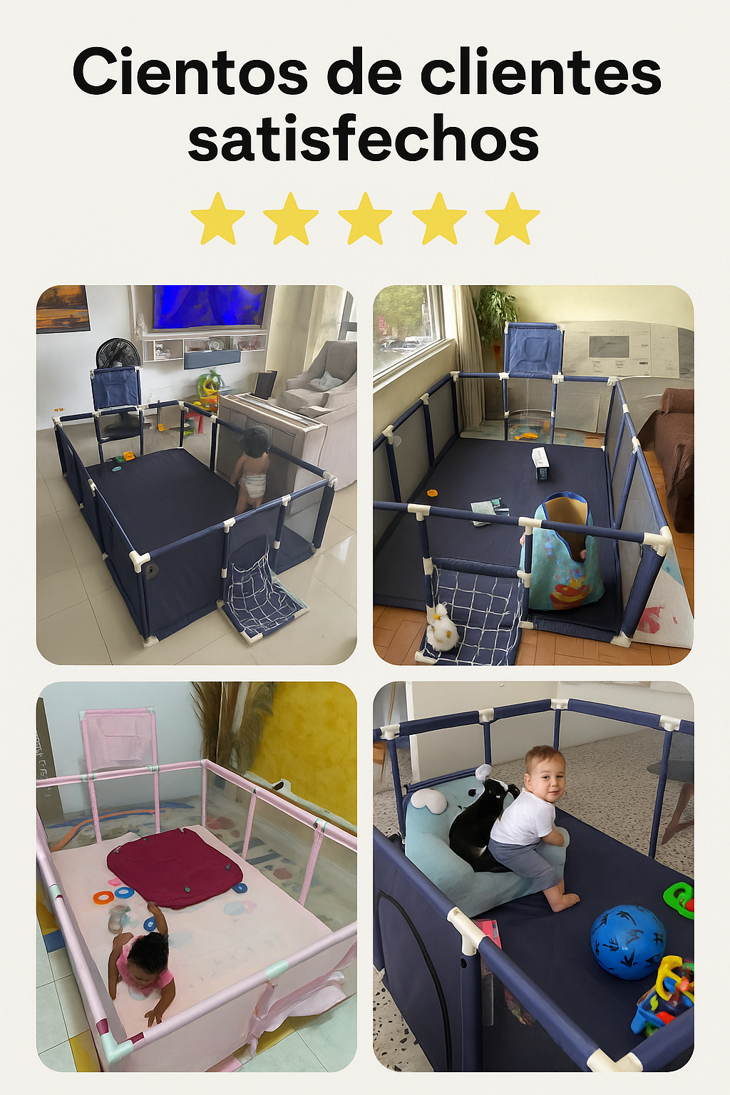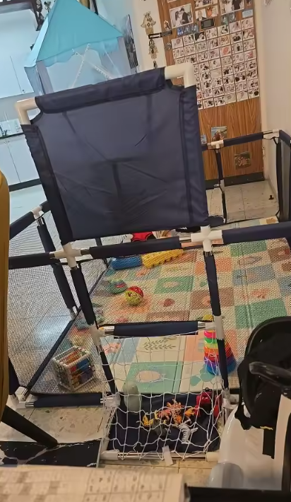La malla 360° te deja verlo siempre, el diseño es suave y sin puntas, y el tamaño es perfecto para que tenga libertad pero no ande por toda la casa. Es como tener su propio “parque de juegos” dentro del hogar, sin pagar entradas ni salir con todo el combo.